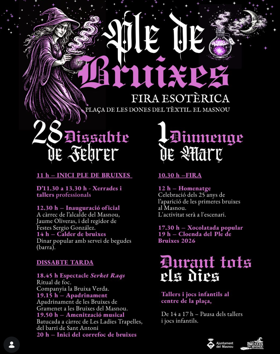 I Ple de Bruixes del Masnou amb activitats familiars, fira esotèrica i espectacles.