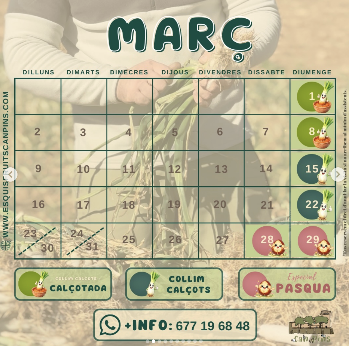 Descobrireu el secret dels calçots: com es planten, com creixen i què els fa tan especials. Anireu a l'hort a collir-los i cadascú s'endurà a casa el seu propi manat. Compartirem moments amb els animals: els donarem menjar, els acariciarem i aprendrem a cuidar-los. I pels més petits... una volta en poni plena d'il·lusió i somriures!