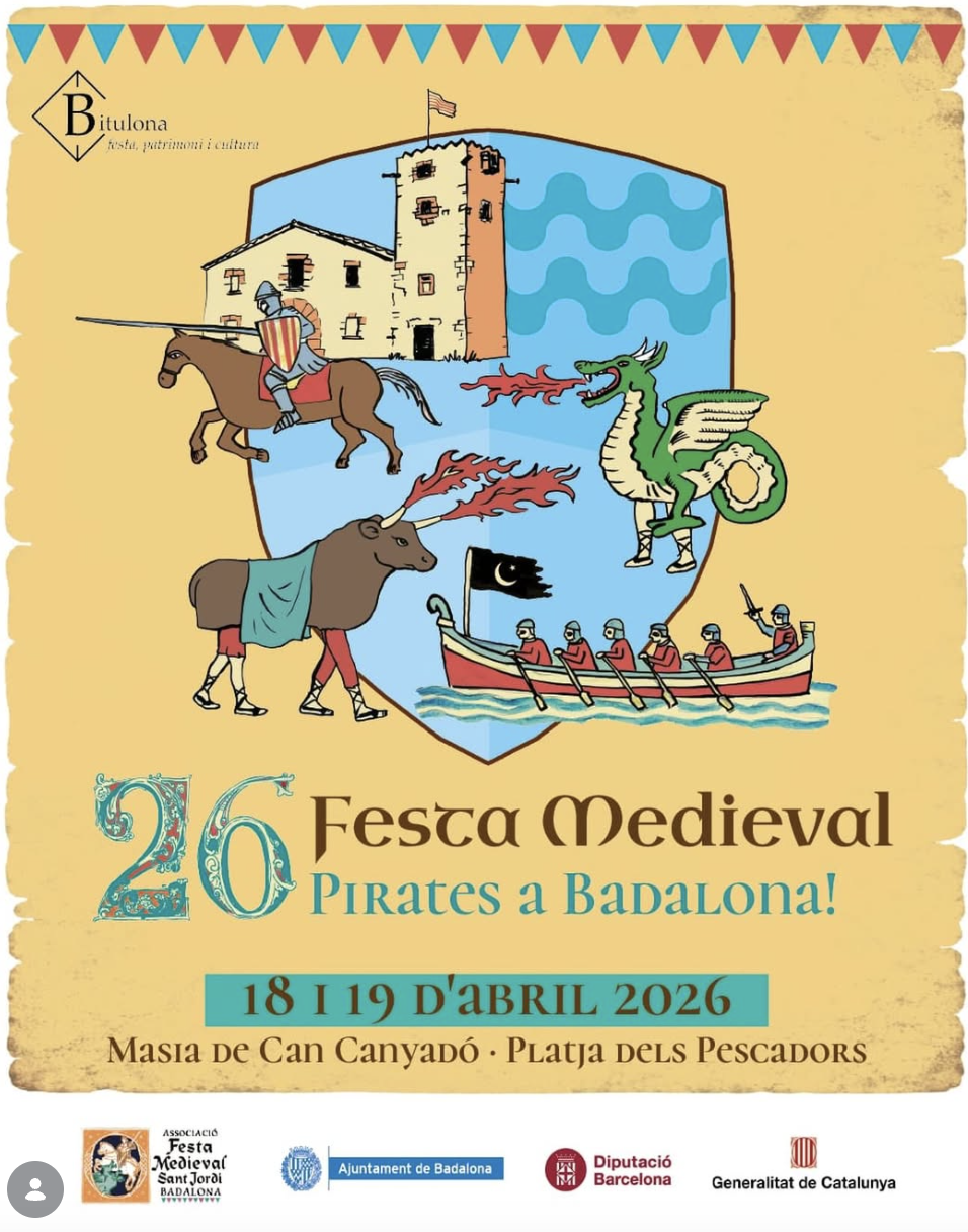 FESTA Medieval de Badalona Saturday 18 April 2026 17:30 Sunday 19 April 2026 22:30 la Platja dels Pescadorsi La Baixadeta de Canyadó Badalona, CT Spain (map) Google Calendar ICS Preu: gratuïtEdat: tota la familia Més informació es publicarà aviat