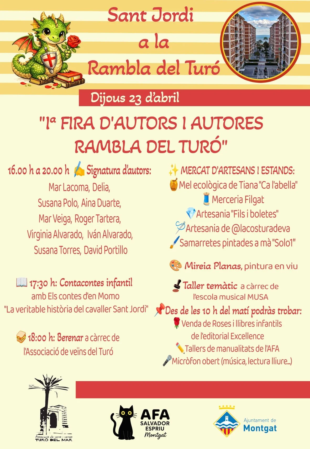 Cartell i programació de la I Fira d'Autors i Autores de la Rambla del Turó! Tenim moltes ganes de compartir amb vosaltres el cartell oficial i tota la programació de la nostra 'I Fira d'autors i autores de la Rambla del Turó". No et perdis l'oportunitat de conèixer el talent del poble i gaudir d'un dia ple de cultura. T'hi esperem per fer història en aquesta primera edició!
