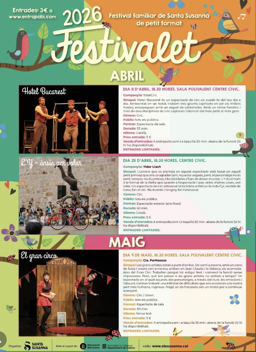 Festivalet 2026 a Santa Susanna! Un festival familiar de petit format amb espectacles de circ pensats per a tots els públics 🎪
