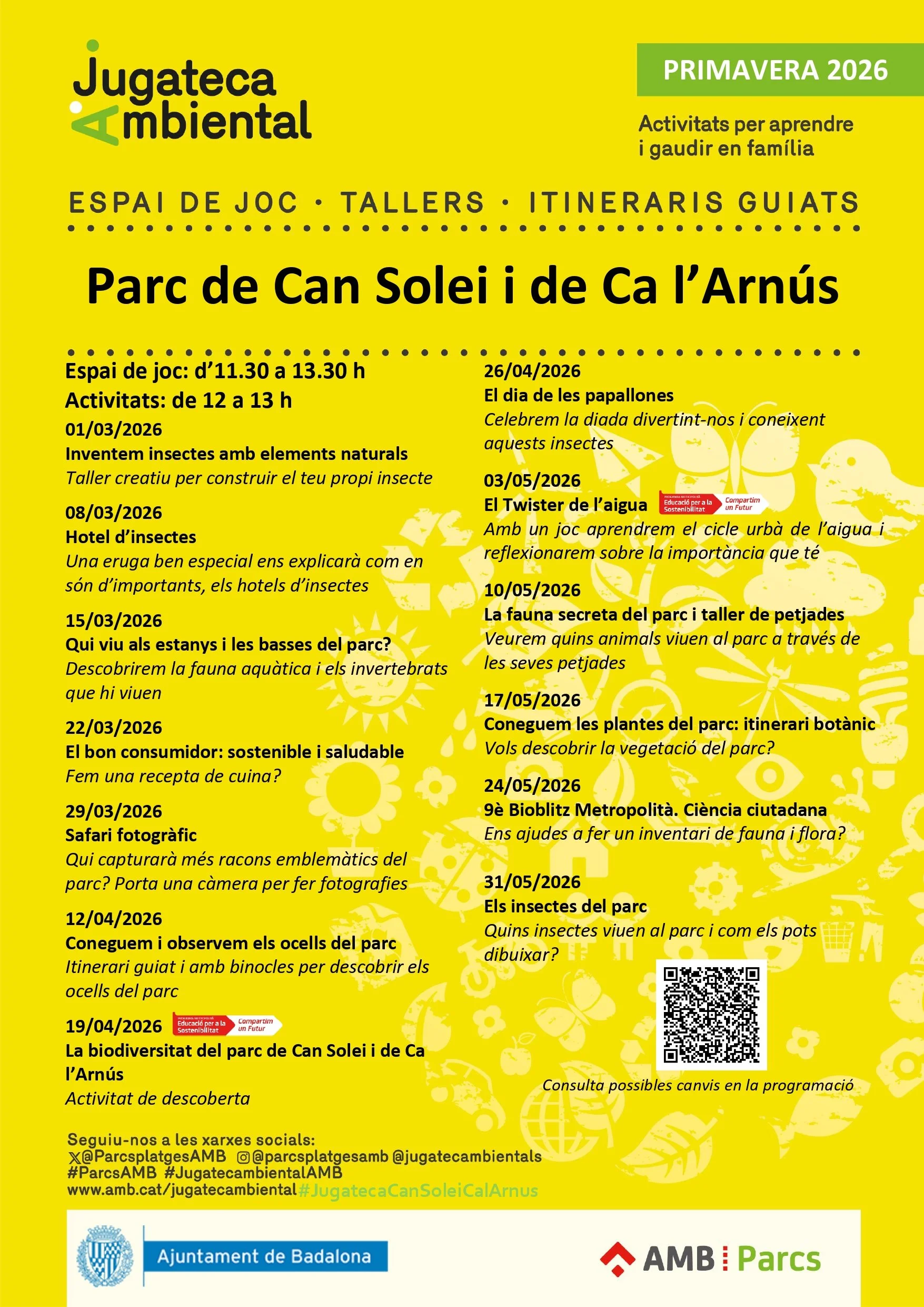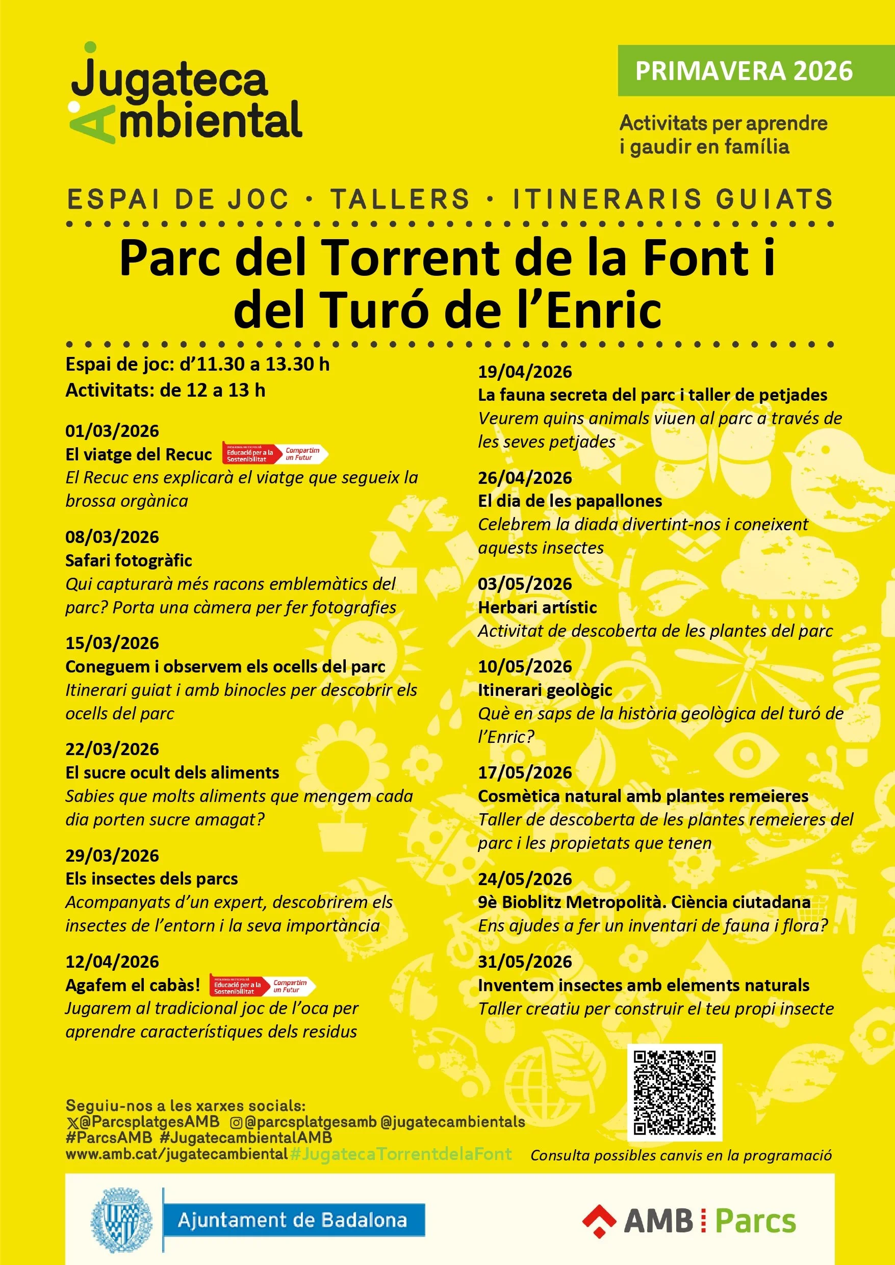 Descripció: La Jugatecambiental ofereix activitats adreçades al públic familiar. Es tracta d’un espai de joc compartit, educatiu i creatiu, amb propostes lúdiques i activitats guiades per conèixer els valors mediambientals i patrimonials dels parcs on hi ha una Jugatecambiental.