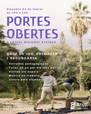 Portes obertes a Krisol Waldorf Steiner- Xerrades pedagògiques, taller de pa per als més petits, visites als espais i mostra de treballs creats per l'alumnat.