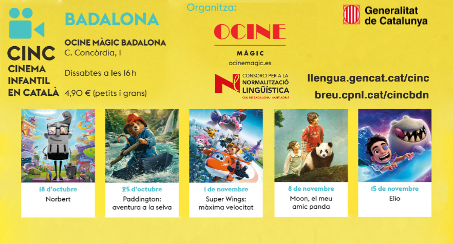 Aquesta tardor, l’Ocine del Màgic Badalona torna a obrir les portes al cinema infantil en català. Un cop més, ens aproparà les millors històries i ens farà gaudir en família. Els dissabtes del 18 d'octubre al 15 de novembre a les 16 h, riurem i viurem aventures amb els personatges més pintorescos del cine. Preu únic reduït de 4,90 € per a petits i grans.